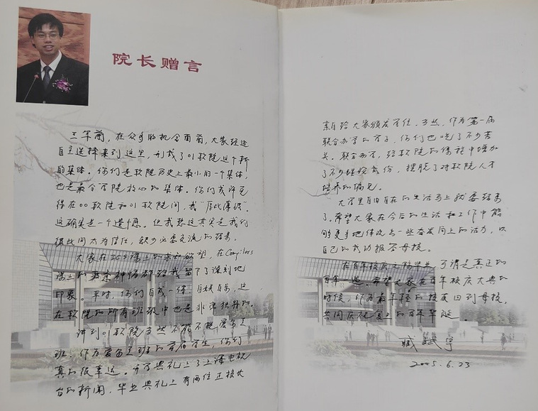 返校日当天,特地回顾了在软件学院3年的本科生活,除了本科学业之外,还是有很多丰富的集体活动,毕业光盘中记录了3年的所有的集体活动,从共青森林公园秋游、到搬北区、03年迎新、信息学院运动会、安吉秋游、献血、小九寨沟春游、千岛湖冬游、再到毕业嵊泗游,直至毕业散伙饭,原来3年的集体活动这么多!我们早已经融为一个集体,成为兄弟姐妹!
