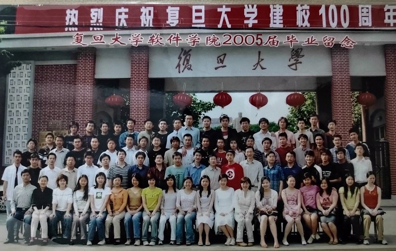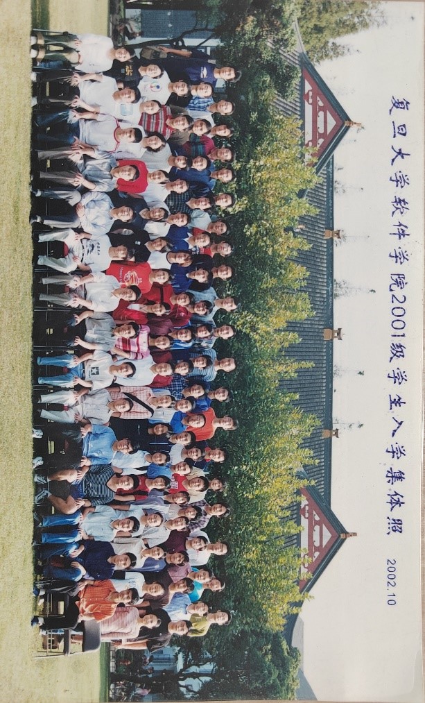 2001级软件学院是一个特殊群体。那时候80名同学来自复旦大学不同的院系,有数学系、力学系、化学系、药学院、网络学院等等,因为有了一年多的本科生活,所以在02年大家聚在一起的时候,其实已经有了各自原院系的烙印。另外一面,各自同学的交际圈不限于本院系,朋友圈的交际有更多更大的链接。老大(臧斌宇院长)在毕业赠言中写到“平时,你们自成一体,自娱自乐,这在软院的所有班级中也是非常独特的”,我们各自有n个小团体,但又彼此交融。就像二进制0和1的数字一样可以组成,形成了无限的可能。