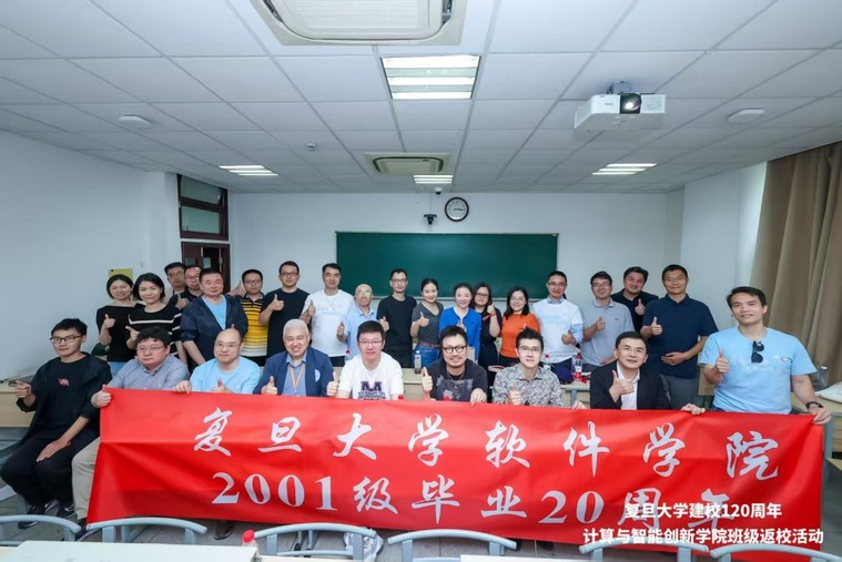 感谢复旦大学120周年返校日的活动,感谢学院老师精心的组织,让软件学院2001级同学在毕业20周年后重返母校,能够再重温一次校园生活。我们都像展板上写的一样“青春印记复旦为证”,“归来仍是少年”。